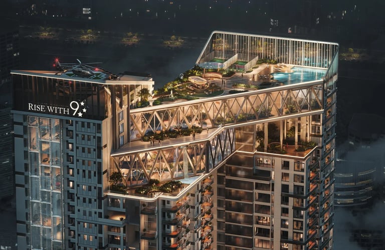 Imagine stepping into the heart of your home and feeling your spirit lift. For the first time in a high-rise, you'll find a breathtaking 23-foot living space, a vertical expanse of light and air once reserved for sprawling villas. This isn't just a room; it's your private sky villa—a statement of grandeur where every sunrise floods in and every breath feels freer. This is The Rise 9, where we haven't just built apartments, we've captured a feeling: the soul of a villa, soaring above it all. Your unmatched view starts from within.