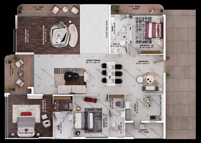 Choose a sun-kissed 3 BHK, where your family’s laughter finds room to echo and grow, or ascend to the gracious 4 BHK, where a private foyer welcomes you into a sanctuary complete with a versatile room that becomes your studio, library, or a child’s dream-filled fortress.
