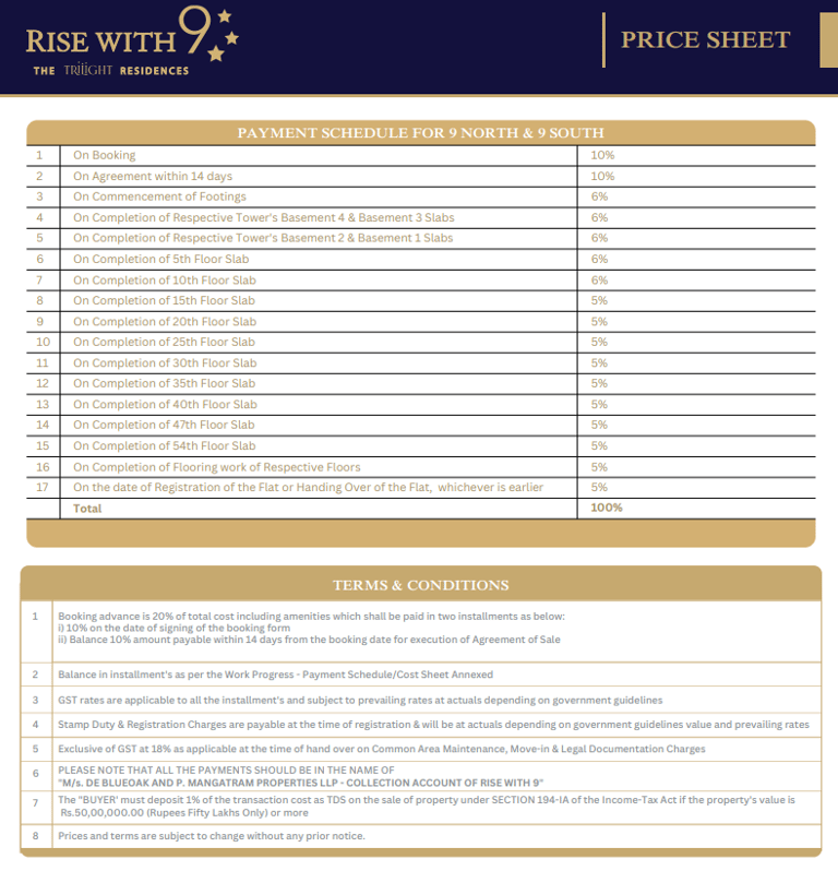 Rise With 9 positions itself as an ultra-luxury, large-format offering with sky amenities and multiple clubhouses — buyers typically compare it on unit sizes, price/sqft, amenities, and possession timelines with other premium launches in Kokapet.Are there any ongoing litigations or title issues known?